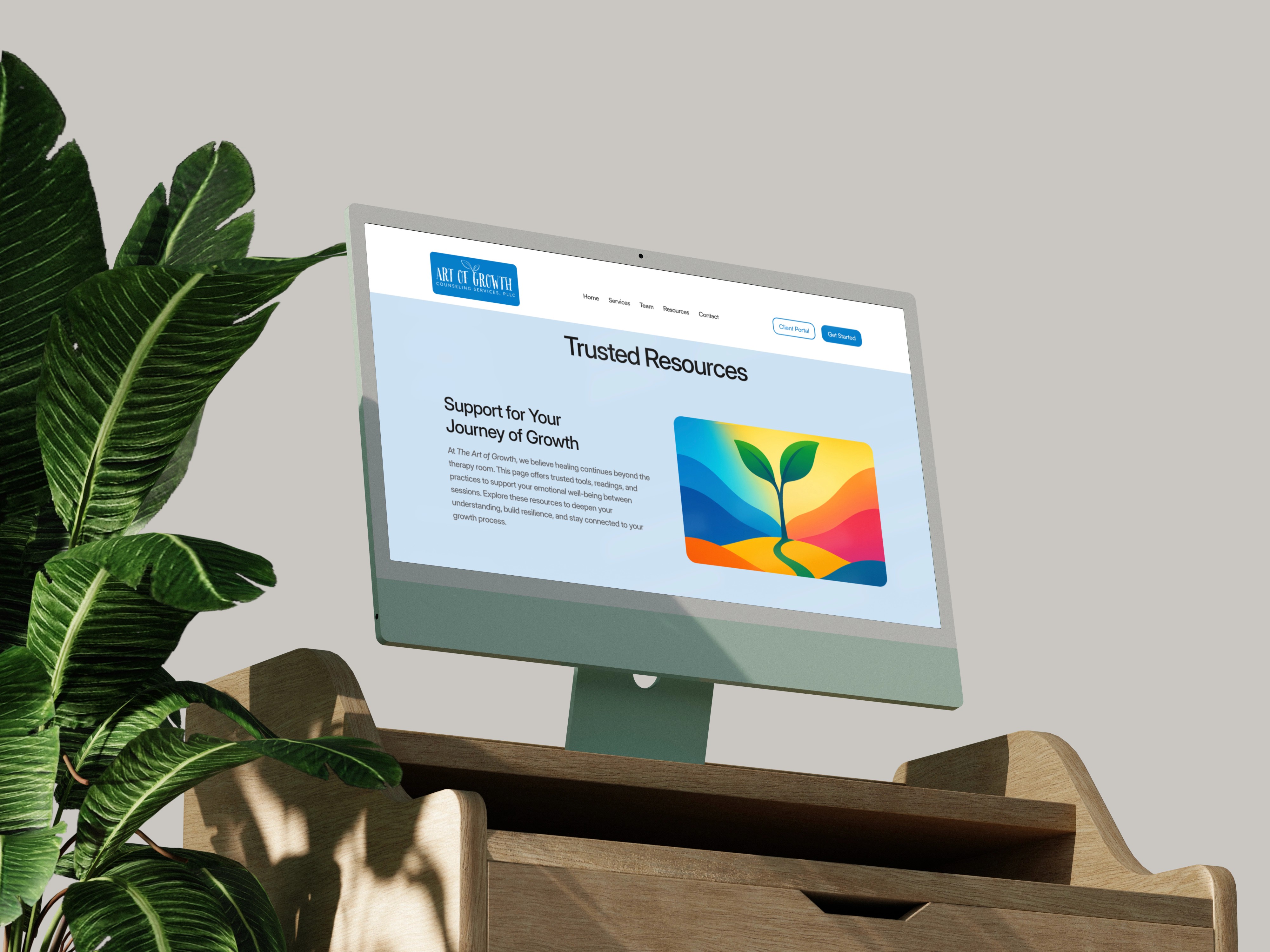 The Art of Growth website is now fully designed and optimized for launch, with a strong foundation for trust, usability, and conversion. The site clearly communicates the brand’s mission, services, and values, while providing a supportive experience for individuals navigating mental health decisions.